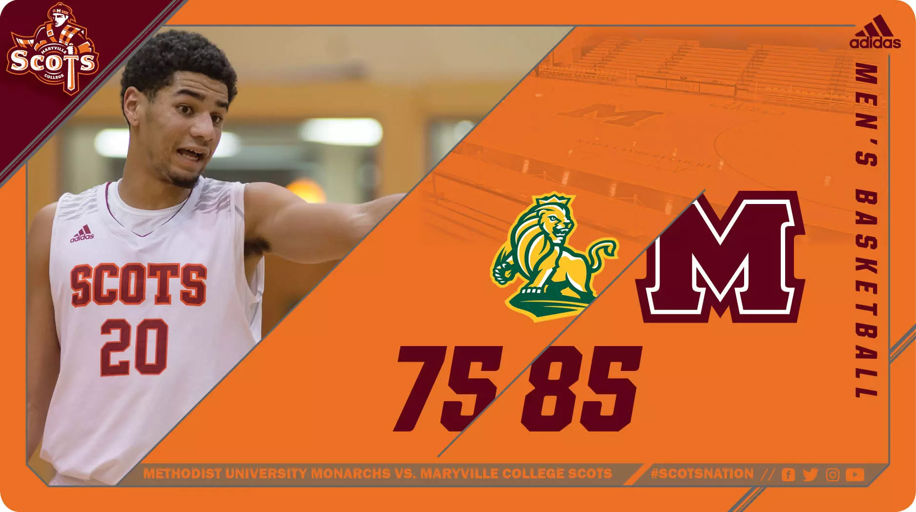 The Scots outrebounded Methodist, 39-35, while outpacing them 23-13 in the second half. They shot 32-of-65 (49.2 percent) for the game, while bucketing five treys. Maryville outscored their North Carolina counterparts, 18-0, off the bench.